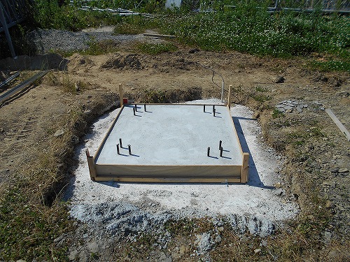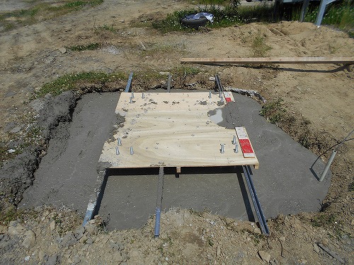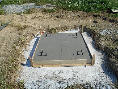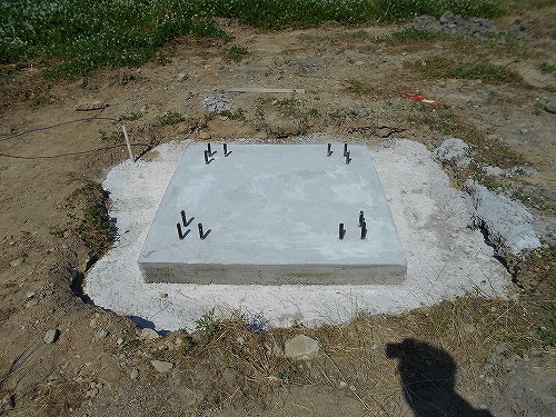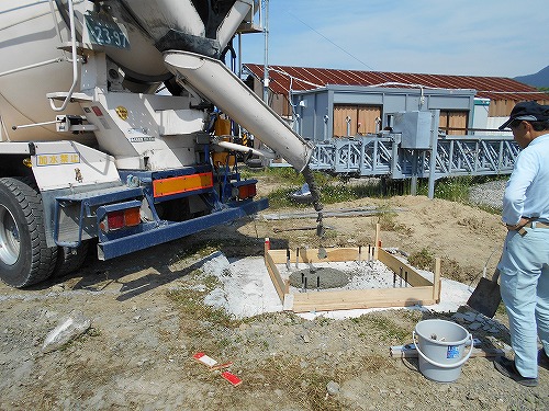 今日も快晴で、風があり爽やかな気候でした。第1回目の生コン打設です。 13時ちょうどに生コンが到着し施工しました。 数回に分けて配送されたのですが、生コン会社がすぐ近くだったため、長い時間待たずに施工することができました。 2日後にアンカーボルトのプレートをはずして、2回目の生コン打設準備をします。 何よりも天気が心配ですが、タワー本体だけで2トン以上あるので、生コンがしっかり固まるまで養生期間が必要なのですが・・・。 (2015/05/21) |