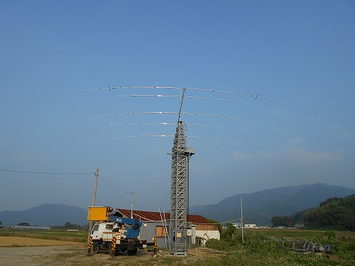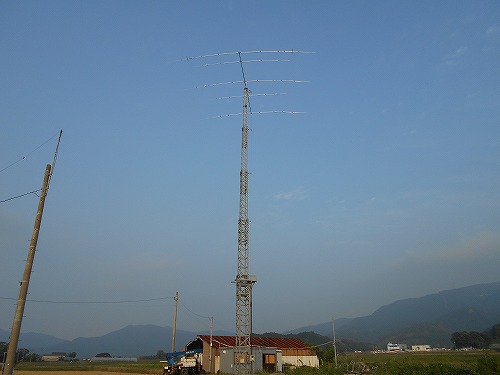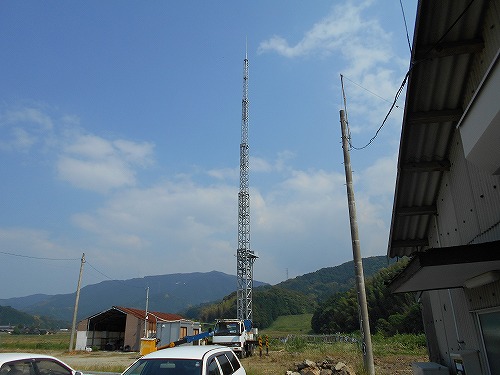 今日は、朝は晴れていましたが、午後から雨になりました。 午前中のうちにタワーの作業ステージの取付や配線など、残工事をバタバタと終わらせました。 これで、一号機の作業を終了し、竣工しました。 アンテナの動作も、ほぼ取説のとおりの特性が得られ良好でした。 午後から借主のOMさんが無線機を持ち込まれて早速交信されました。HFでの本格的な交信は20年ぶりとのことです。 無線局の常置場所も当地へ変更され、正式に開局されました。 (2015/06/02) |