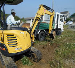 朝から快晴で今日から1号機のタワーの建設です。 簡単にお祓いをしての工事開始です。 土質も良く、重機での掘削でしたので、午前中に穴掘りを完了しました。 どこかのタワーメーカーの取説には3人で手掘りで4時間ほどで終わると簡単に書いてありましたが、とんでもない。今日掘削した土の量だけでも、4トン車4.5台分です。 アンカーボルトの固定、配筋、接地も終わり明日の生コンを待ちます。 (2015/05/20) |