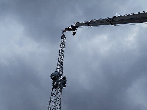 今日はクランクアップタワーの撤去の仕事でした。このタワーも役目を終えたのですが、年中雨ざらし日ざらしで長い間がんばって建って