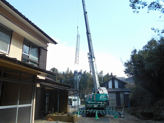 正式な仕事始めは1月10日ですが、今日は在庫となっている中古のクランクアップタワー4本を、敷地内のコンクリートを敷いたメンテナンススペースへ移動しました。放置状態でしたので、雑草や太いツタが巻きついていて、これから切り離すのに時間がかかりました。今から整備して販売する予定です。中古タワーの買い取り・販売を再開しようかと考えています。 |