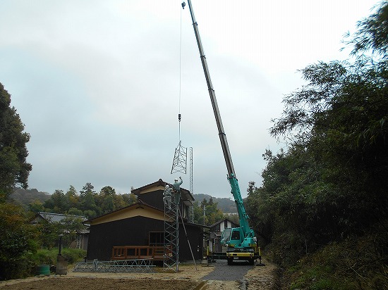 | 今日はお客様から建設を請け負っている15mタワーの組み立てを行いました。中古を購入されての建設ですので、ボルトナットが不足していたり、錆がでて使用できない物もたくさんありました。無事、タワーがブロックごと組立が完了し後日積み上げを行います。 |