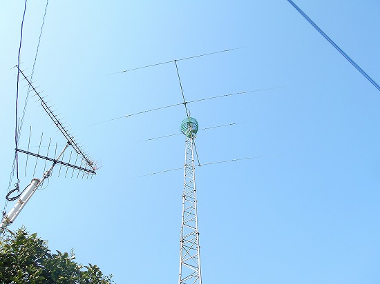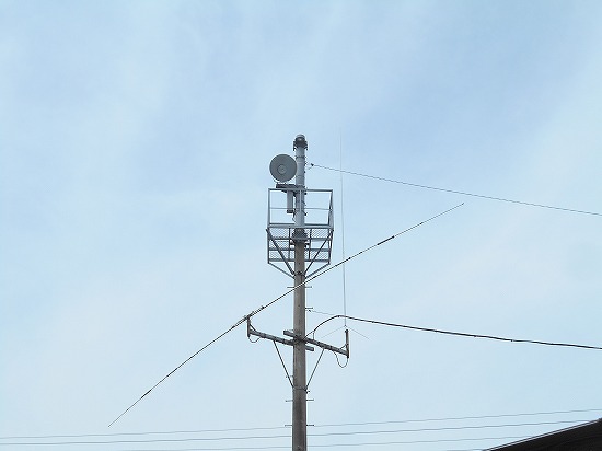 16日に既設の撤去を行った無線局のアンテナ取付工事をしました。 N社の7M/14M/21M/28MhzのロータリーダイポールとD社のU/V3段GPアンテナ。 電柱から1mウデガネにて突出ししてあるため、昇柱して作業できる限界の位置です。足場ボルト上での作業のためネジひとつ締めるのにも苦労する距離です。あと、ケーブル10D-FBの2本張替。09時半から始めて17時までかかりました。 天気が良いのも今日までの予報。 やっと梅雨らしくなるのか・・・。 |