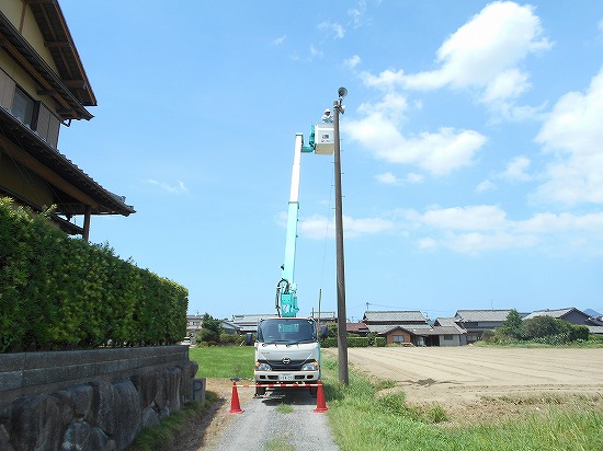 地域放送用の有線放送施設の全体改修工事を行いました。 スピーカー交換作業は地上14mの高さなので、暑いながら風が通り我慢できますが、スピーカー線を300m張替は地上高5mほどで、風もなく大変な思いをしました。 私たちの仕事は、夏は暑いし冬は寒い場所での作業です。 夏場はクーラーボックスに氷と飲料を入れて現場に行くのですが、2リットルの飲料が午後早いうちになくなります。熱中症ギリギリで作業していますので能率が悪いです。 |